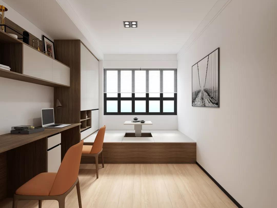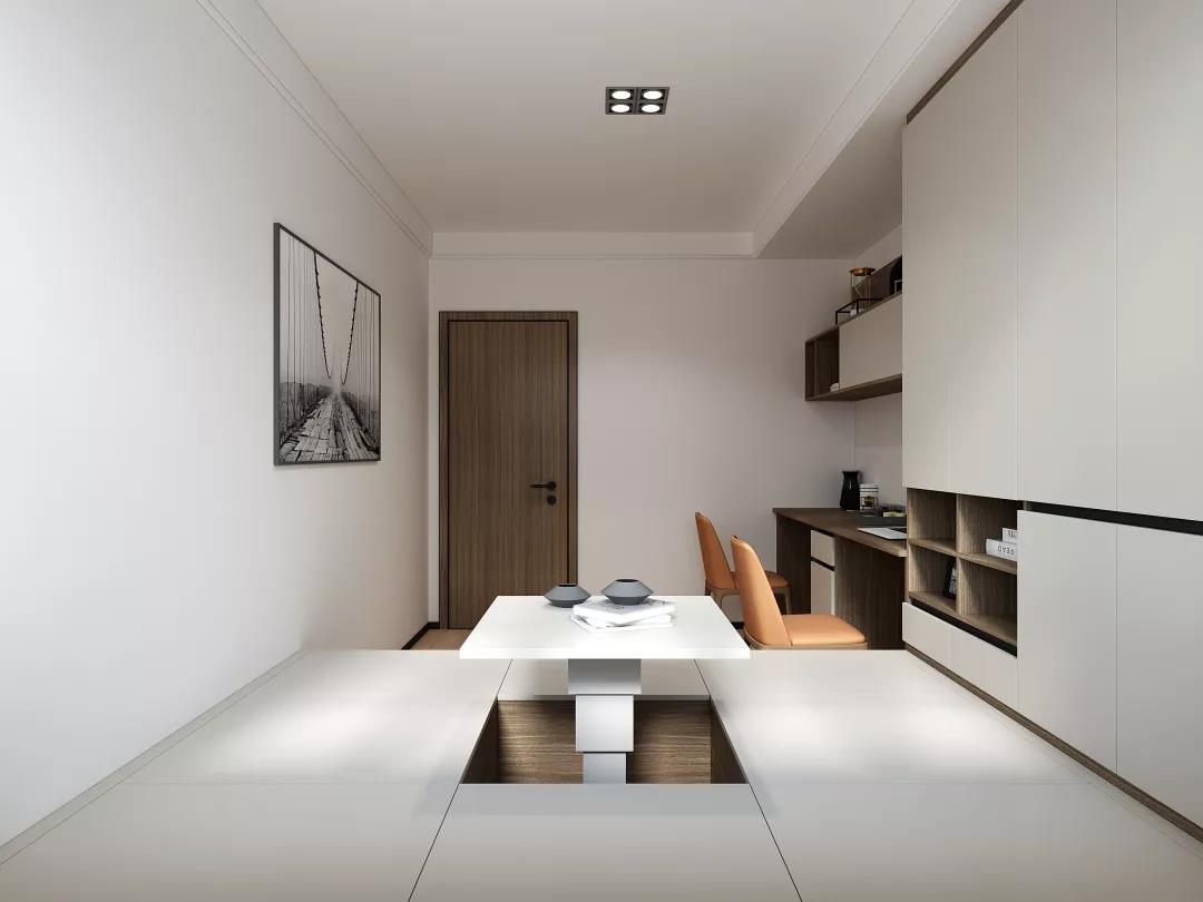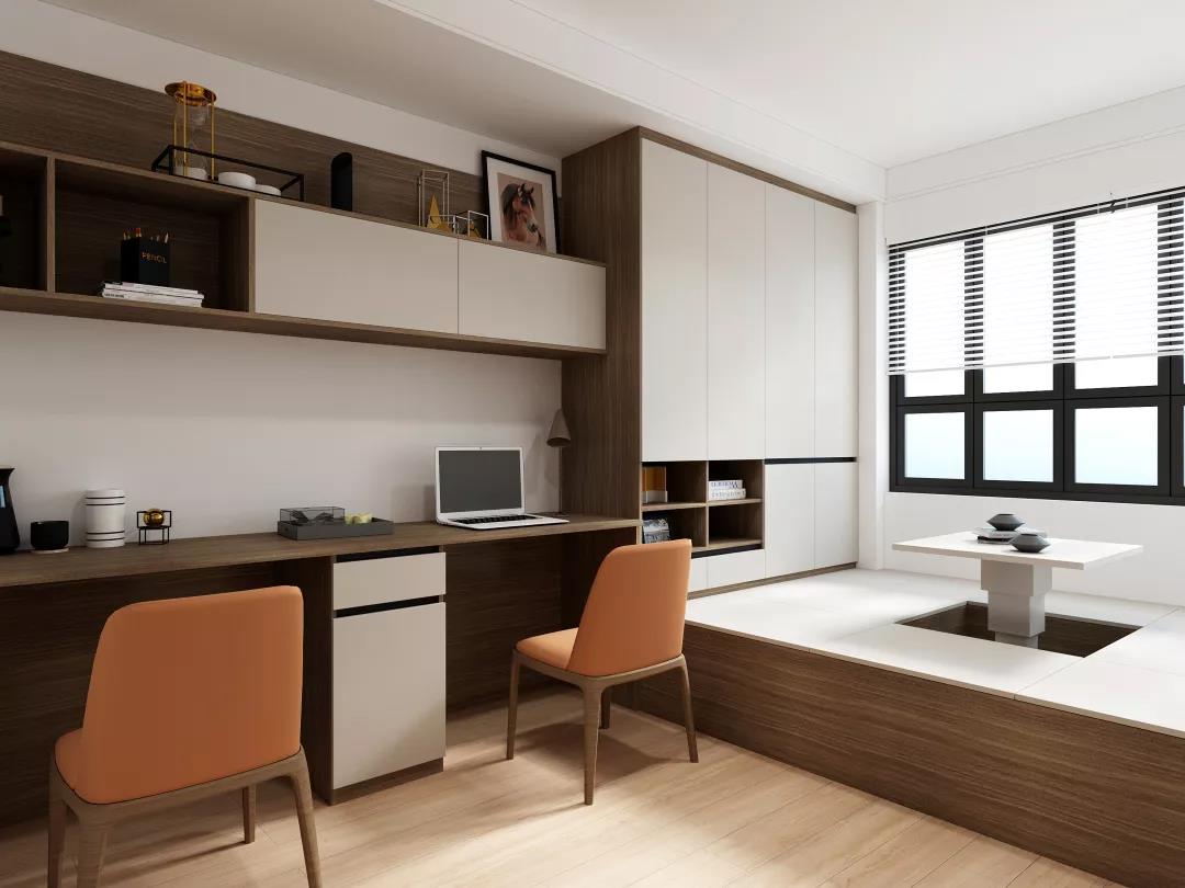 儿童房的设计相对灵活,衣柜、榻榻米、书柜,书桌形成一个整体,充分利用空间,预留足够儿童玩乐区域。
