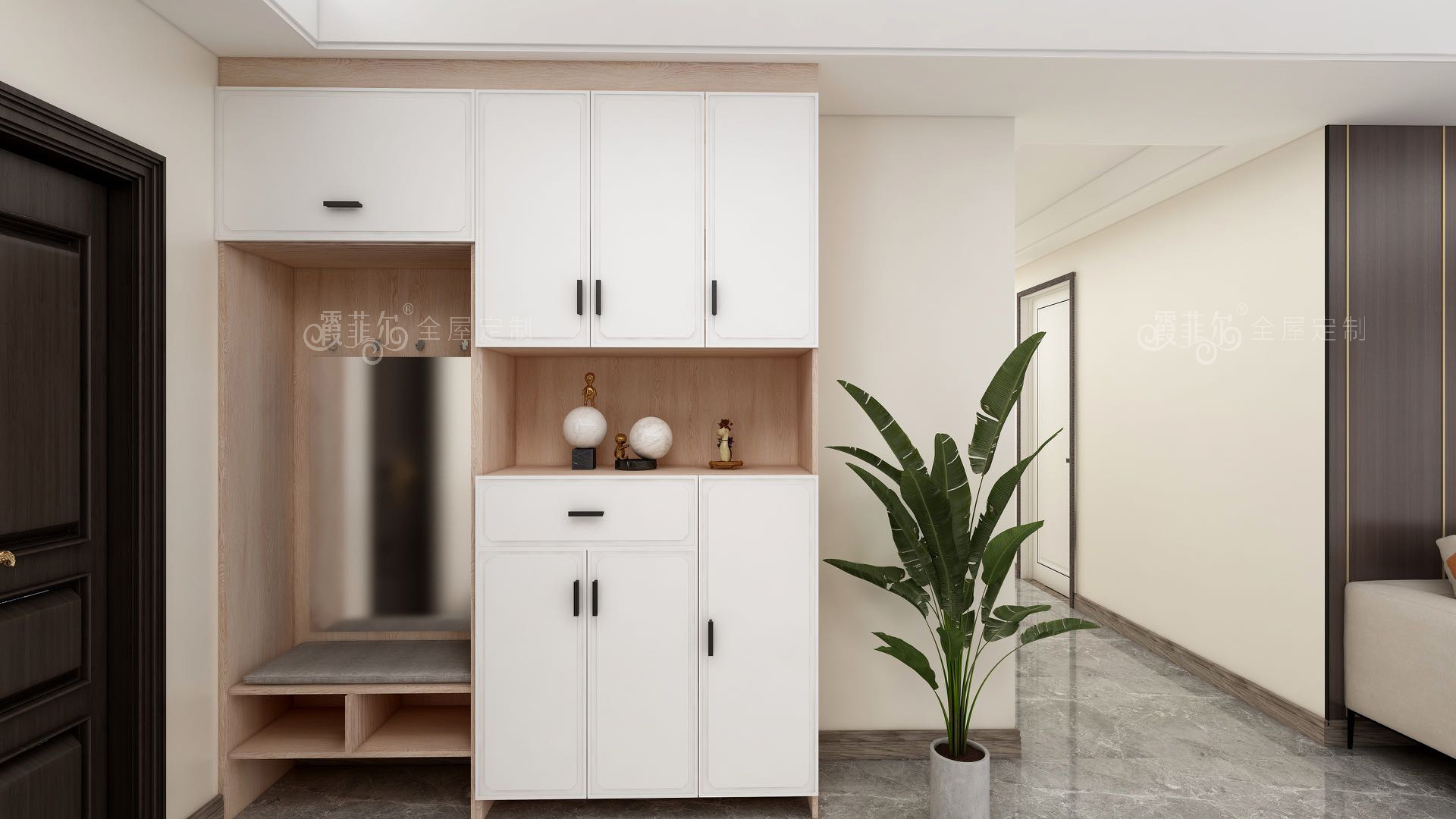 设计以清新的木纹色做设计主色调,配以精致凹凸质感的象牙白色,自由平和,又不不失生活热情。